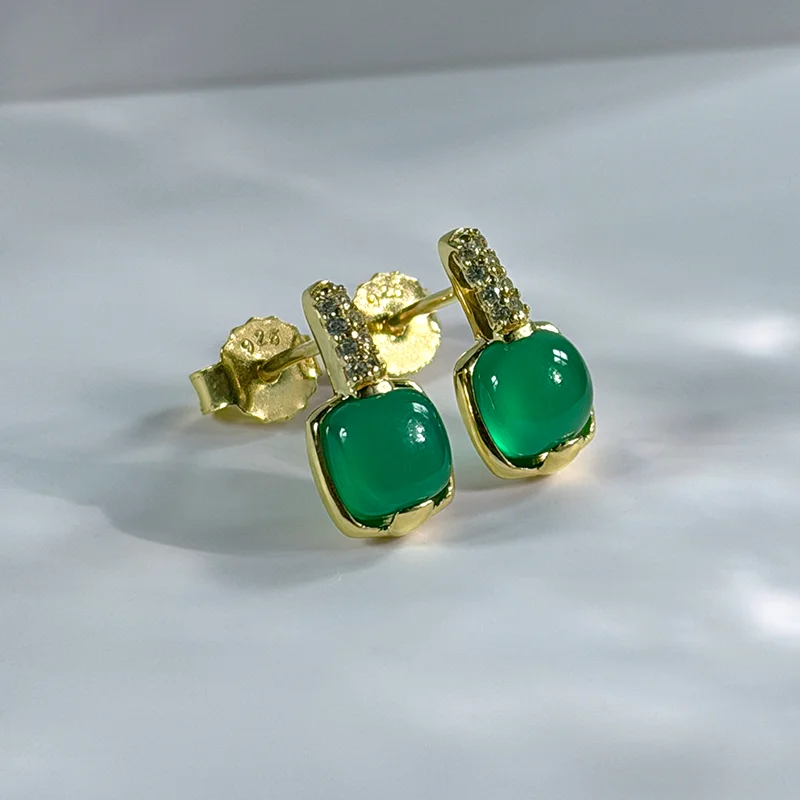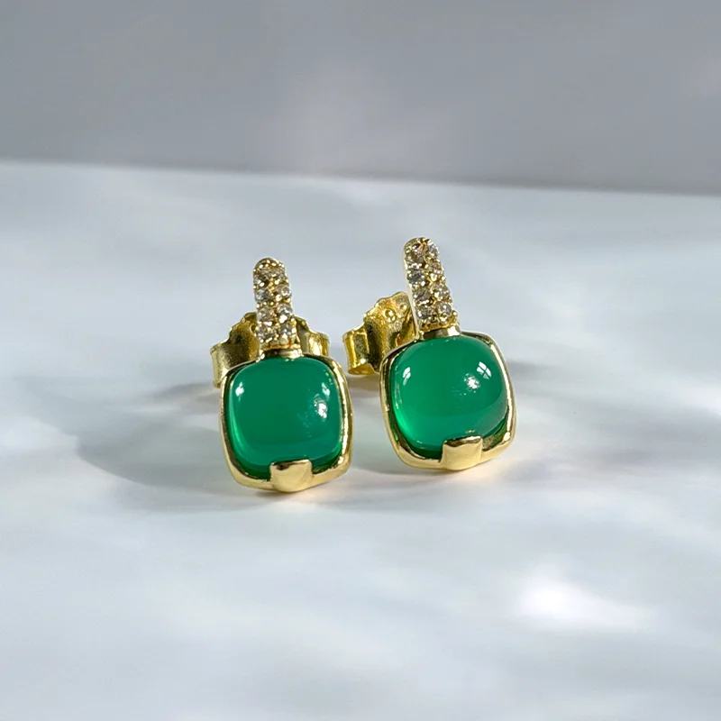 Rich emerald-green in tone against warm 18k yellow gold vermeil — polished, vibrant, and designed to elevate everyday elegance