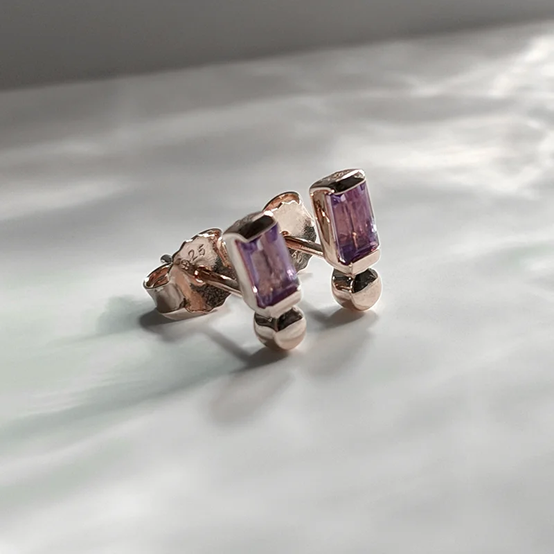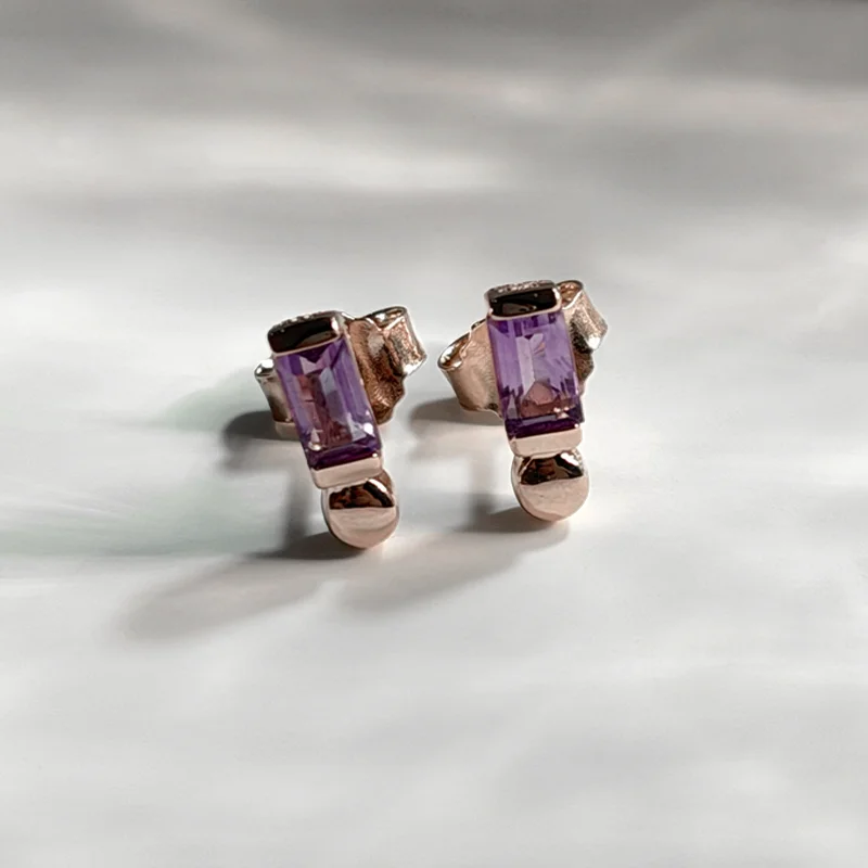 Emerald-cut amethyst stones set in warm 18k pink gold vermeil, designed in a clean, minimal silhouette.
