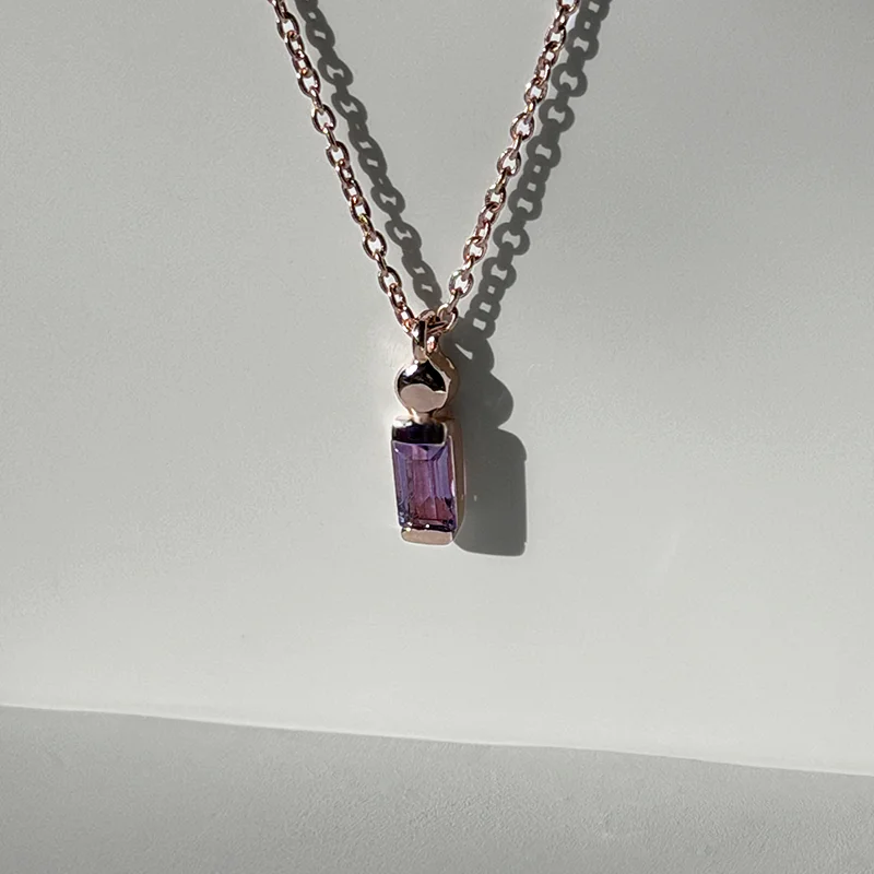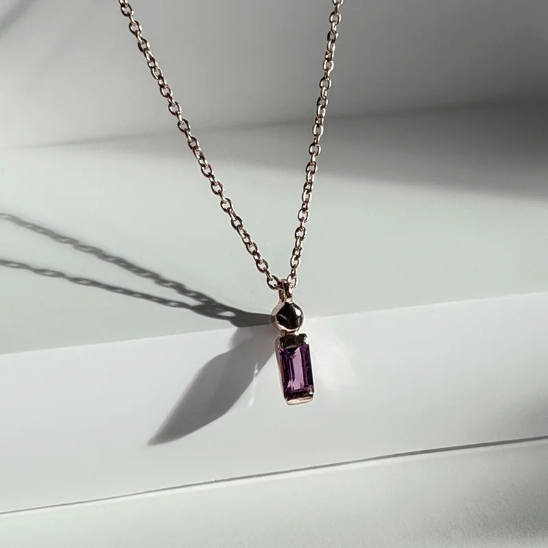 A slim emerald-cut amethyst set on a fine 18k rose gold vermeil.