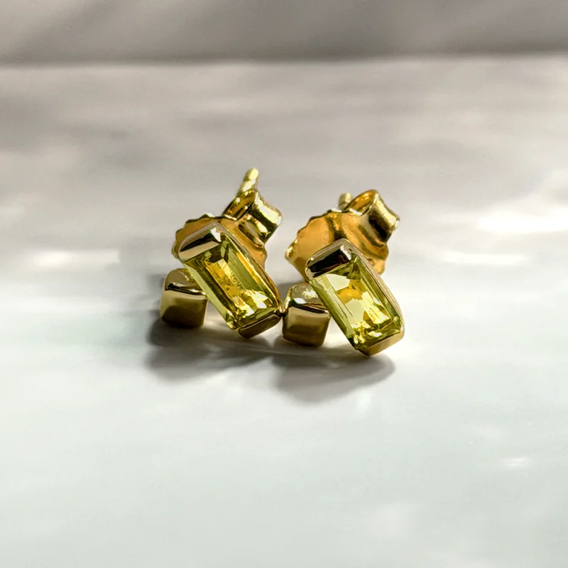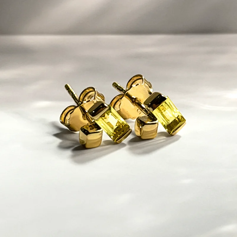 Emerald-cut lemon quartz set in warm 18k yellow gold vermeil, framed in a clean, refined bezel.