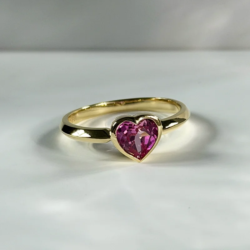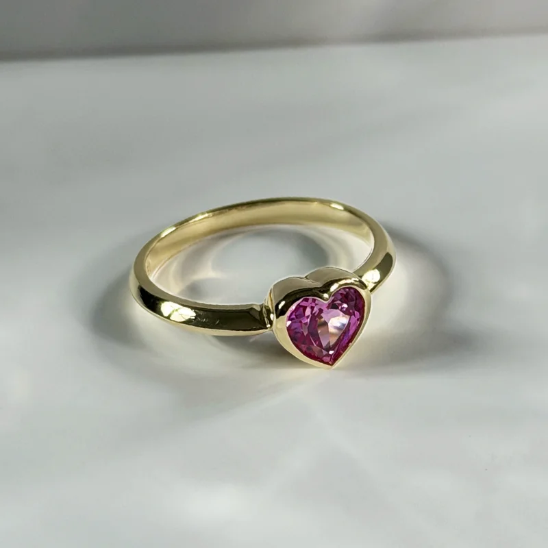 A faceted heart-cut Pink Quartz set in warm yellow gold — radiant, feminine, and quietly bold.